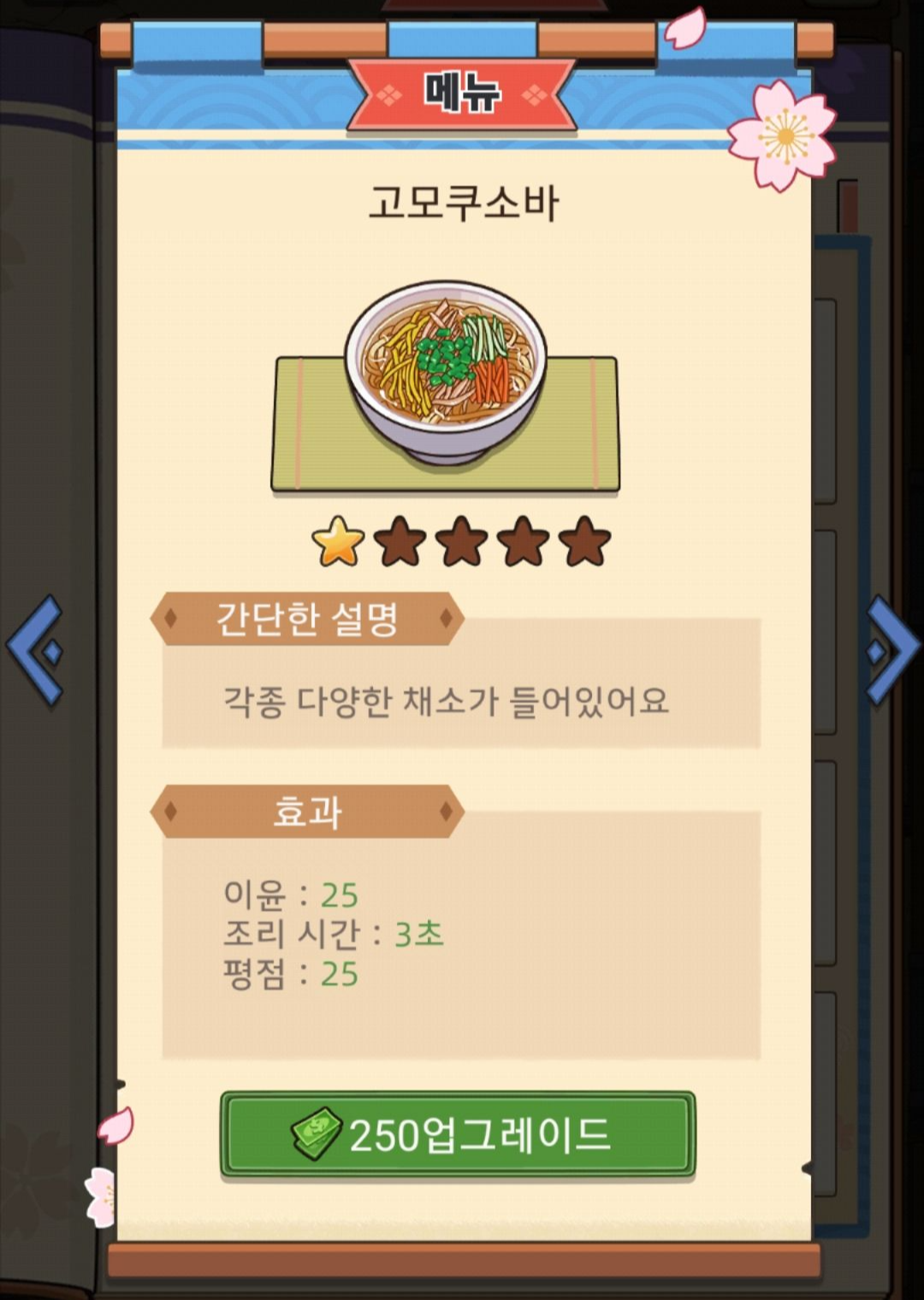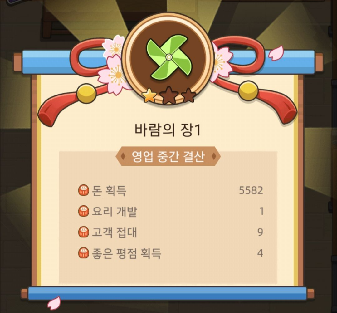 신메뉴도 개발해서 천천히 별을 쌓아나가면서 점수를 쌓아나가는 게 주 컨텐츠라고 할 수 있습니다.