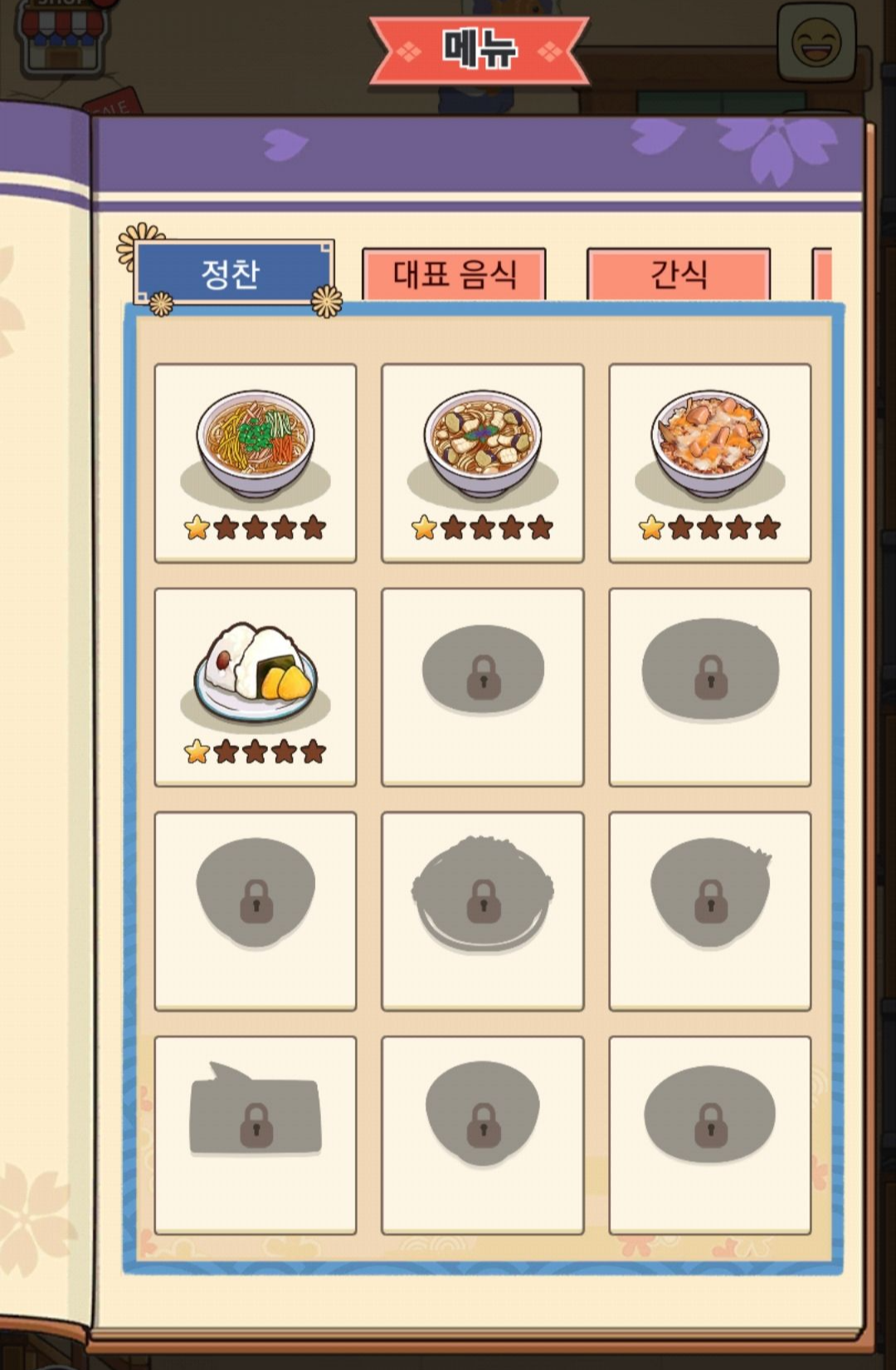 지금까지 플레이하면서 메뉴 평점을 끌어올리는 게 어려웠습니다. 처음에는 괜찮은데 나중에는 중복 메뉴가 많이 나와서 더 그렇더라고요.