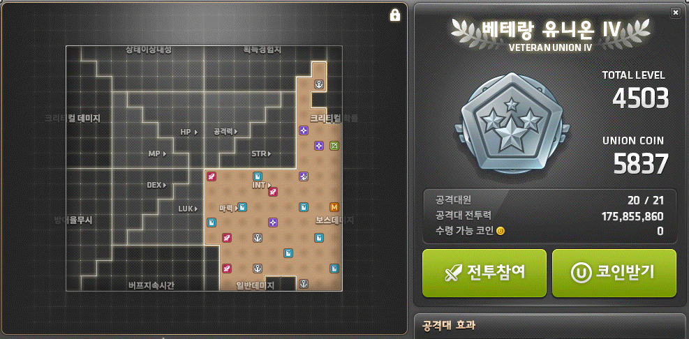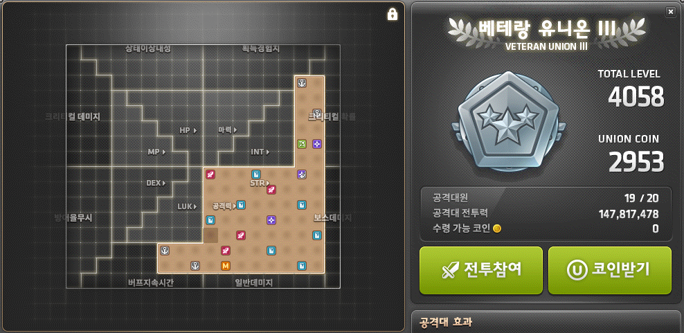 메이플의 시작은 유니온 8000이라는 말이 있는데, 드디어 출입증을 발급받은 것 같아서 마음에 드네요. 그리고 유니온 배치도 깔끔하게 딱딱 맞춰서 크뎀, 방무 나머지는 보스 데미지로 챙겨줬습니다.