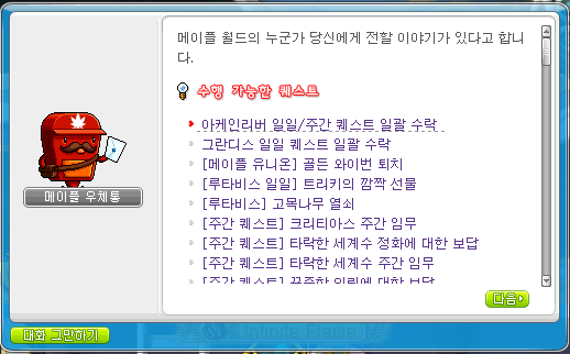 지금까지 메이플은 귀찮아서 일일 퀘스트만 적당히 하고 있다가 메가버닝 부스터가 생기면 육성만 적당히 계속하고 있었습니다.