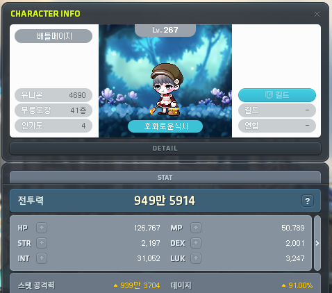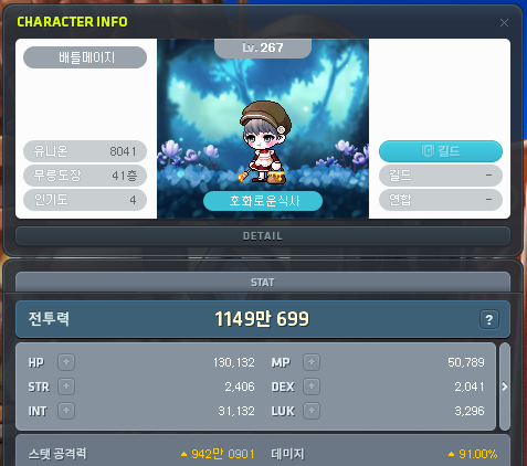다시 전투력을 확인해보니 1150만까지 오른 모습을 볼 수 있었는데요. 주스탯은 3.1만으로 전과 똑같은데 순수하게 유니온 차이로 전투력 200만 가까이 끌어올렸습니다.