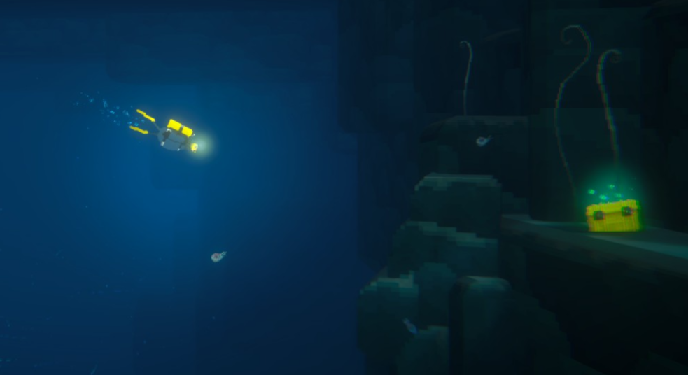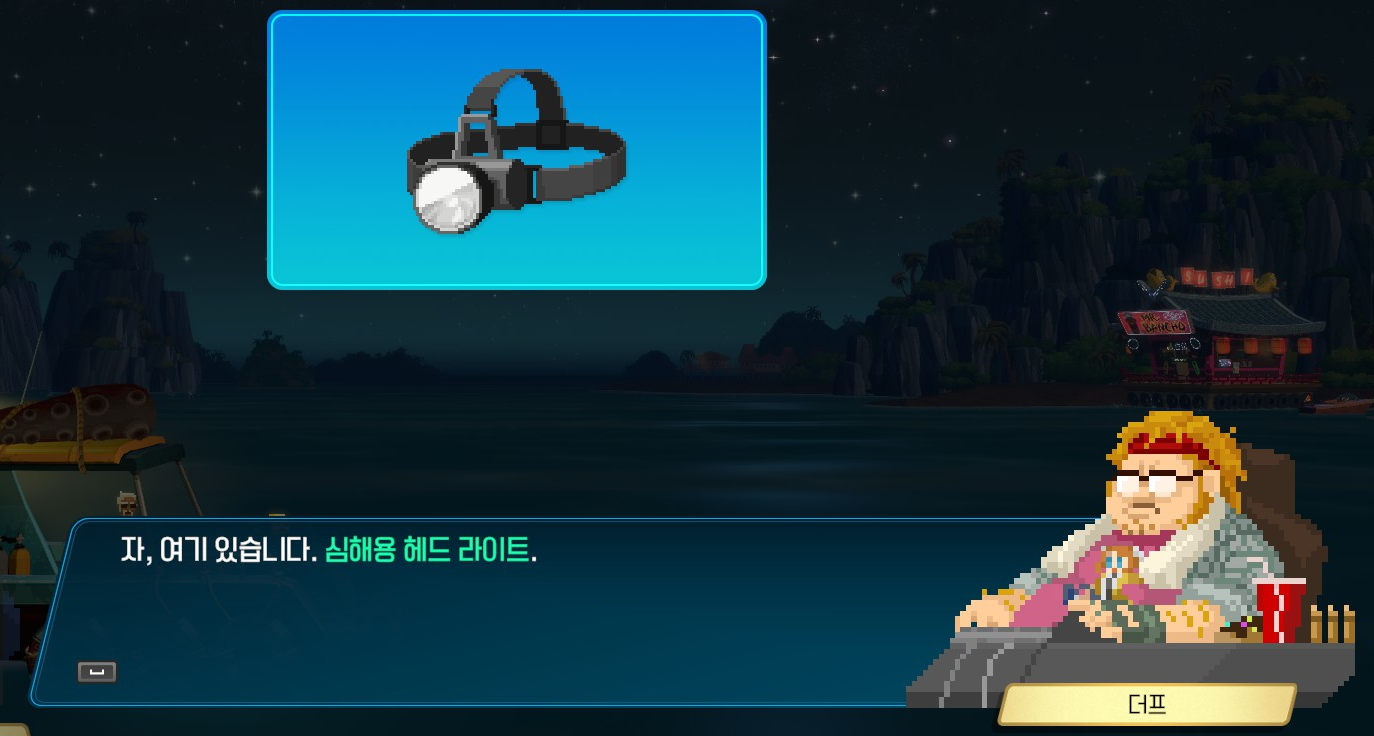 그렇게 심해용 헤드 라이트를 받았습니다. 이제 심해에서도 탐험을 할 수 있게 되었습니다. 심해로 내려가면 자동으로 켜지더라고요.