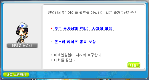 위 사진까지느 2023년 연말이었고, 1월 초 메이플이 큰 뉴스가 터졌는데요... 그래서 뭐 보상을 받게 됐습니다.