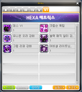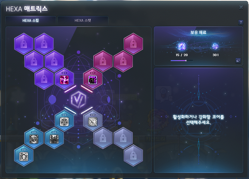 현재 제 HEXA 매트릭스 코어입니다. 데스 빼면 아무것도 없는데요. 이제 여기를 좀 채워보려고 합니다.