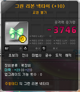 20장 다 사서 발라주니 마력 +23 펫 장비 두개를 만들 수 있었습니다. 메소를 전혀 안 쓰고 마력 +46을 올렸으니 이것도 스펙 업이라고 할 수 있죠.
