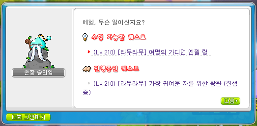 매일매일 잊지 않고 문브릿지 ~ 아르크스 일일 퀘스트를 하다 보니 어느새 레벨 269에 달성했습니다. 아직도 세르니움 원킬이 안 되는데 레벨만 올리는 게 맞나 싶기는 한데... 일단 경험치는 조금씩 쌓아두고 있습니다.