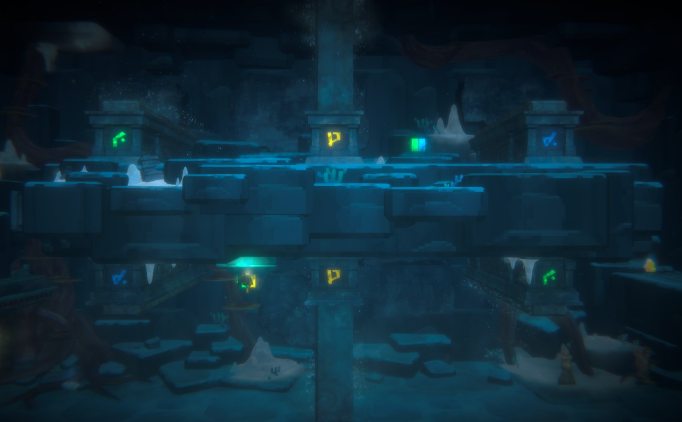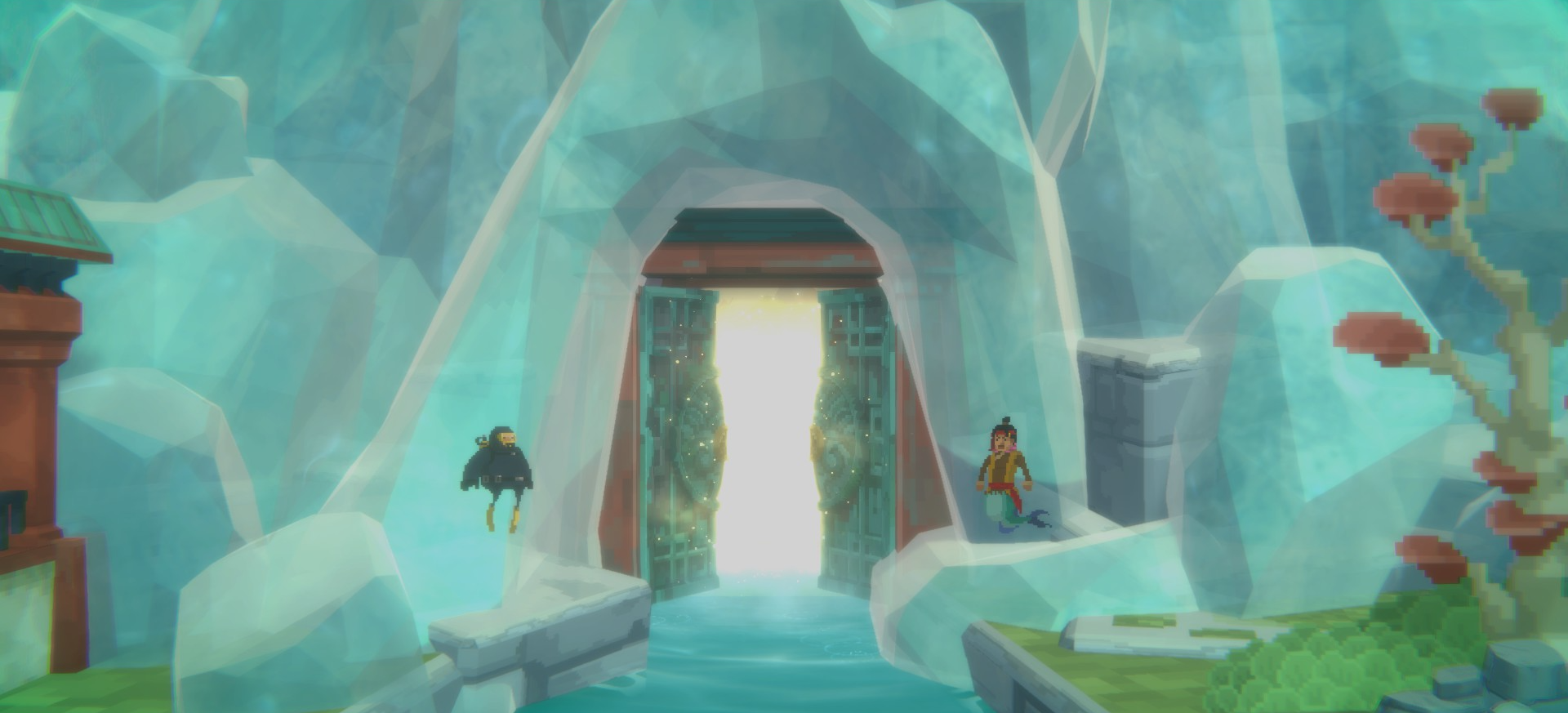그리고 큰 거울이 하나 있었는데 하나로 합쳐서 완성을 해냈습니다. 이제 빙하동굴 최하층으로 거울을 타고 한번에 올 수 있게 됐네요.
