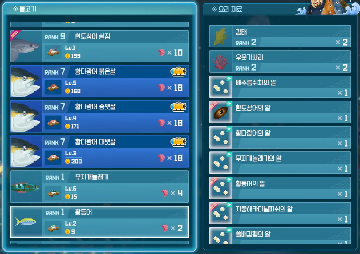 건목열매 천 가공은 나중에 알아보기로 하고, 일단은 참치를 조금 더 잡아보려고 합니다.