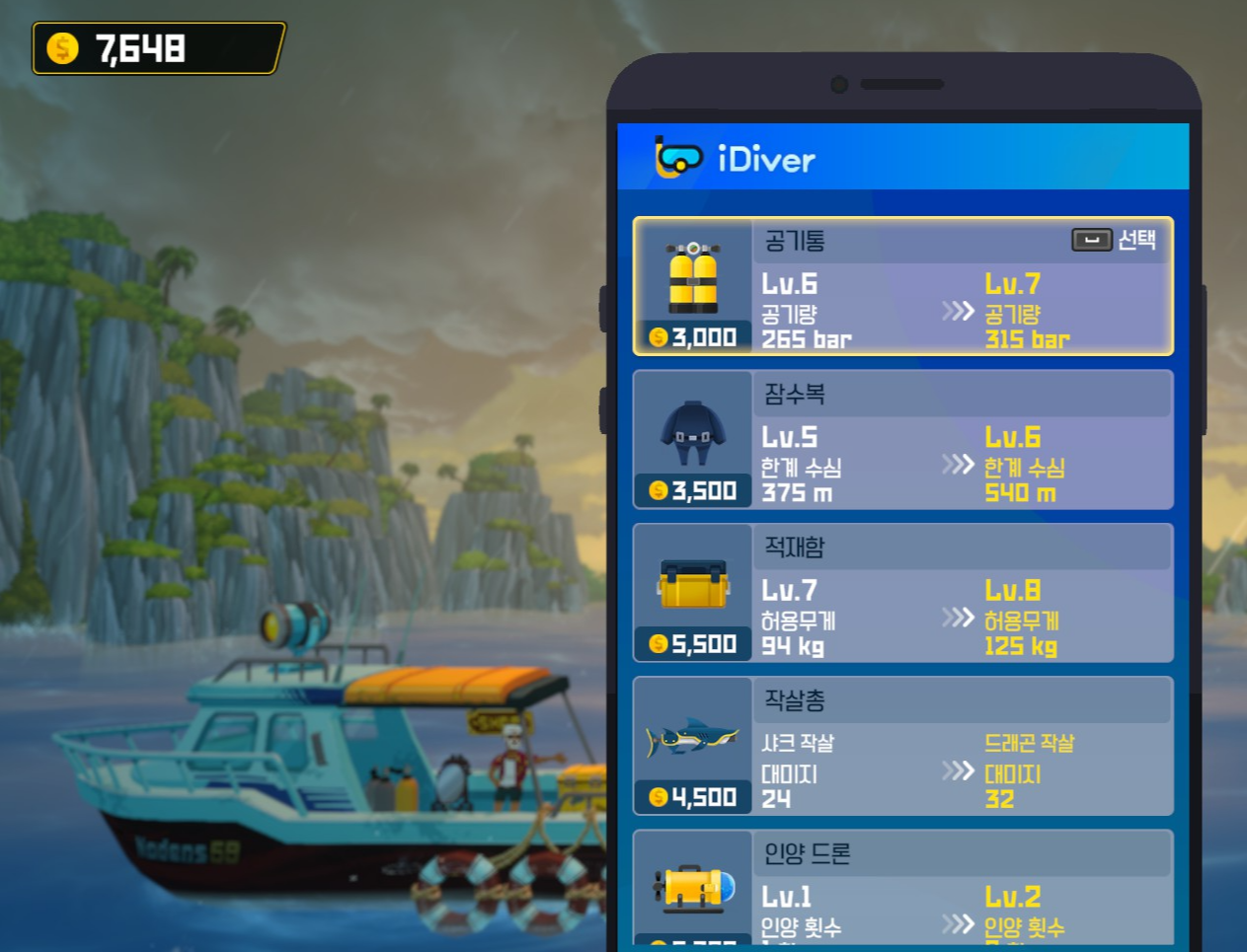 가게를 운영하면서 모은 돈으로 장비들을 강화 시켜줬습니다. 이제 더 밑으로 내려갈꺼니까 하는 게 맞겠더라고요.