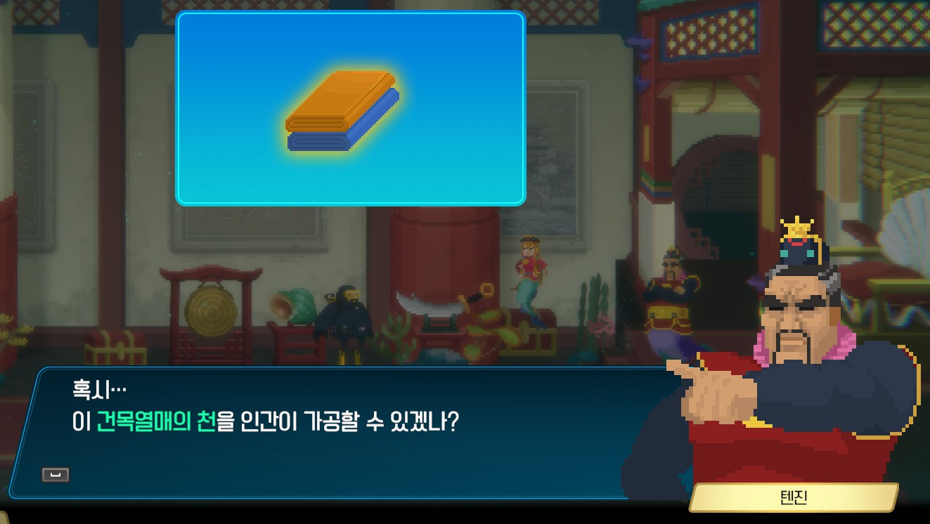 그래서 어인족이 사용하는 건목열매의 천을 받았는데요. 이걸 가공하면 더 밑으로 내려갈 수 있을 것 같습니다.