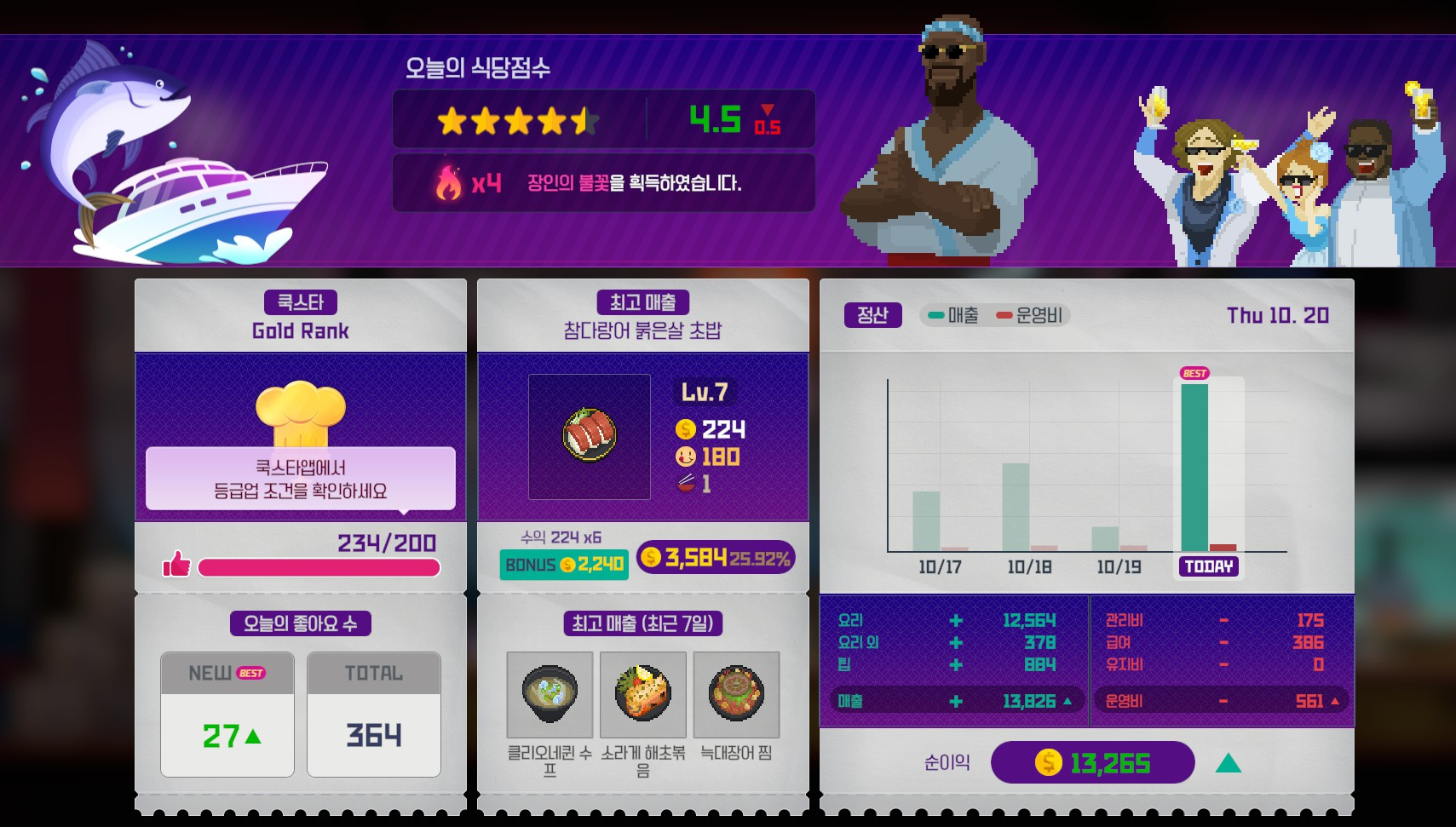 그래도 순수익으로 13,000 골드를 벌어들이는 모습을 보니 확실히 기분은 좋네요.