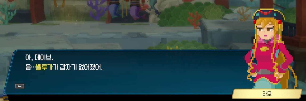 나머지 두 개는 지금 당장 할 수는 없는 것 같아서 물고기 잡아가서 가게 준비를 하려고 했는데 벨루가가 없어졌다고 합니다.
