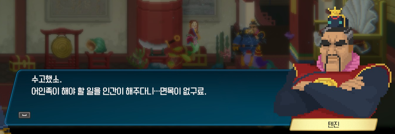 그곳에 들어가기 위해서는 주문을 외쳐야 했는데 데이브는 어인족 말을 할 수 없으니 수왐이 가서 대신해줬습니다.