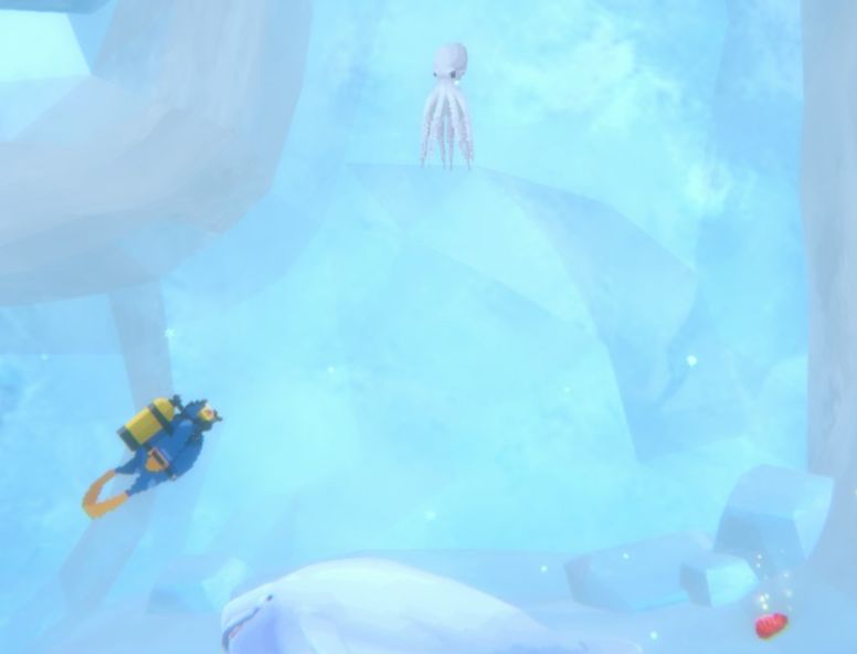 벨루가를 발견했는데 쓰러져 있었습니다. 이 문어한테 당한 모양인데 탐험을 하다가 독을 쏘는 모습을 본 적이 있어서 벨루가가 그 독에 당한 거 같습니다.