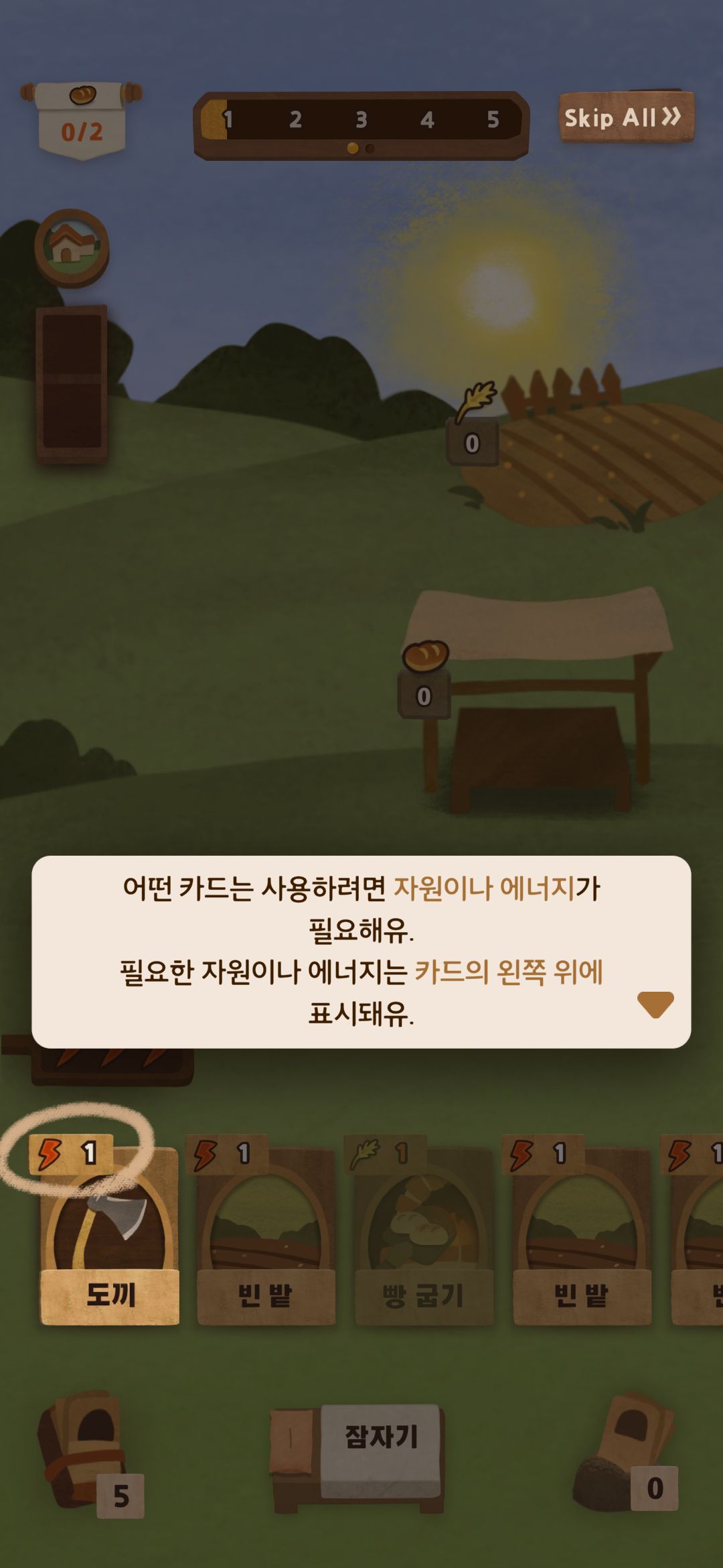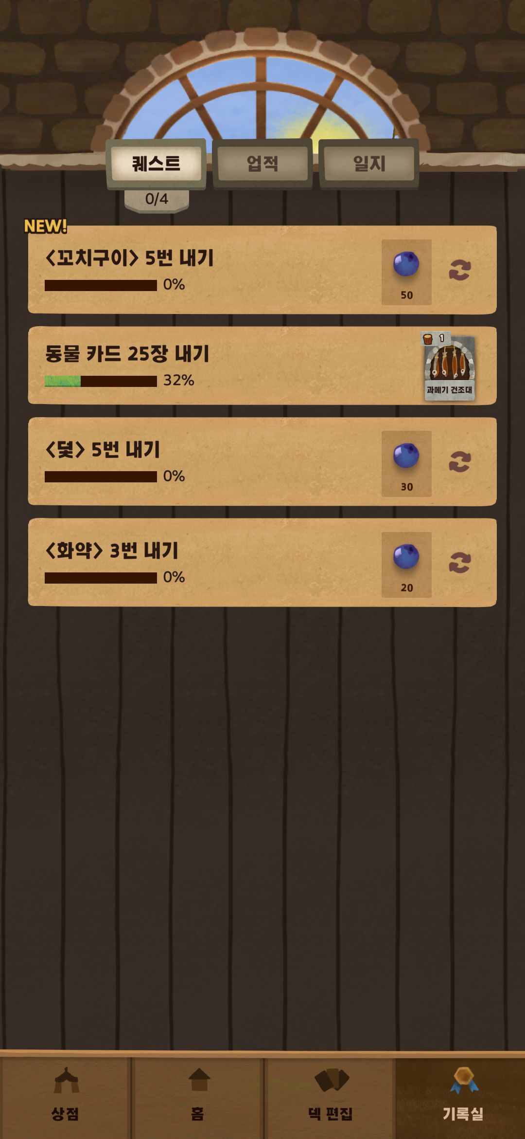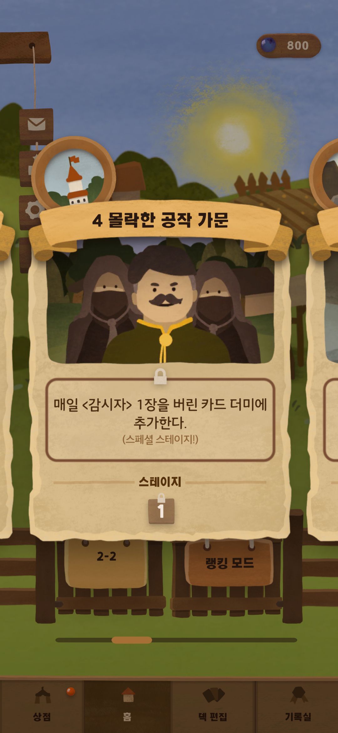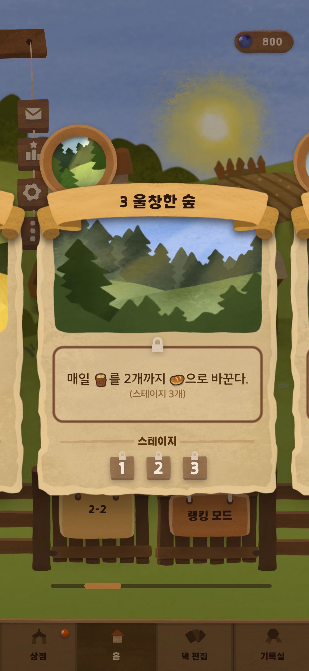각 스테이지마다 진행되는 컨셉이 존재하는데요. 매일 카드를 추가가 되는 방식도 있고, 특정 자원을 식량으로 바꿔주는 스테이지도 존재합니다.