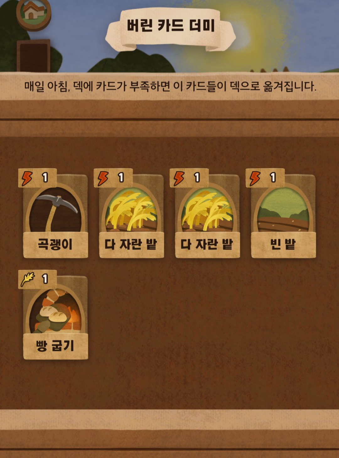 카드 10장을 선택 후 농장을 경영해나가는 덱 빌딩 카드 게임입니다.