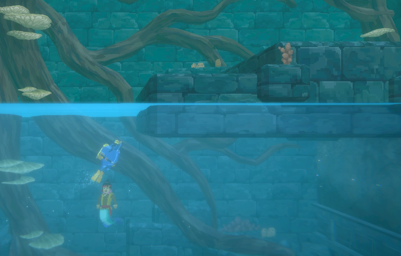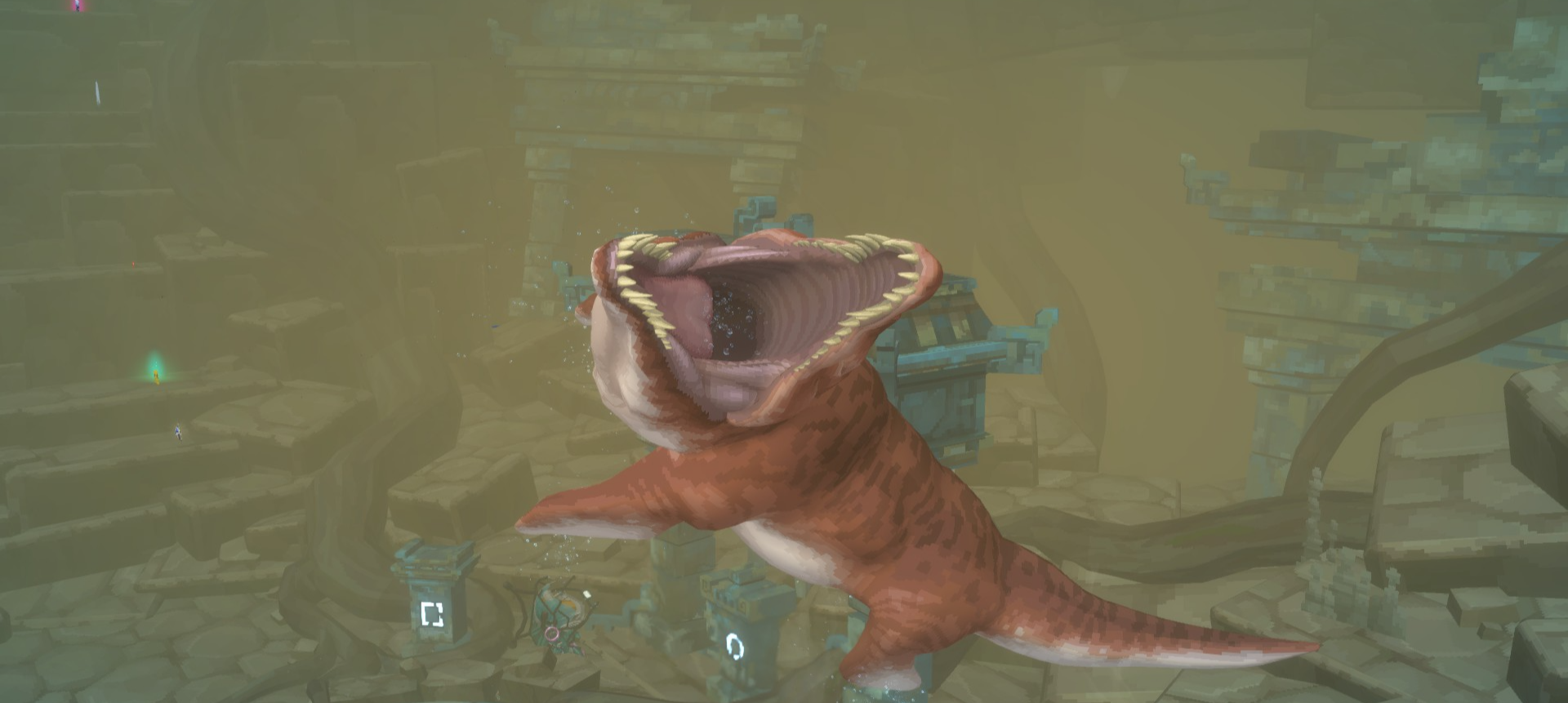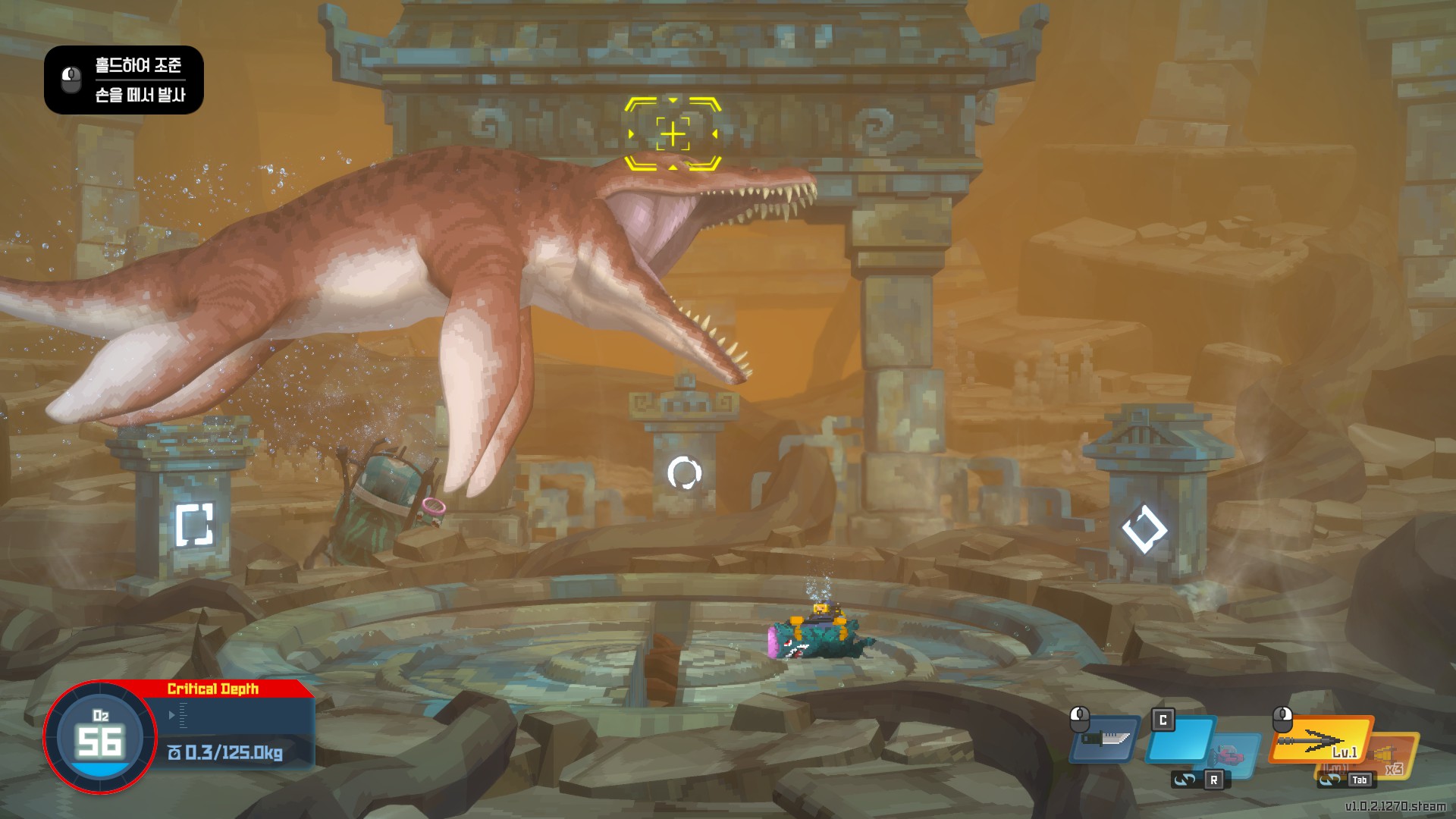 아직 잠수복이 업그레이드가 되지 않아서 산소가 엄청나게 빨리 갈려나가더라고요? 여기서 쉬프트로 대시를 하면 솜사탕 마냥 사라지더라고요.