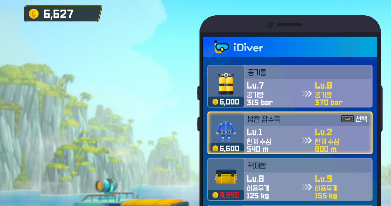 가게 운영으로 번 돈과 돌아다니면서 주운 잡템을 팔아서 겨우 잠수복 업그레이드 할 돈을 구할 수 있었습니다.