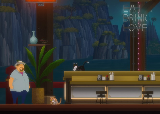 가게 운영이 끝나고 데이브가 밖으로 나가보니 고양이 모모가 밖에 나가는 모습을 발견해서 미행을 하기로 했습니다.