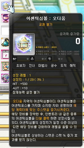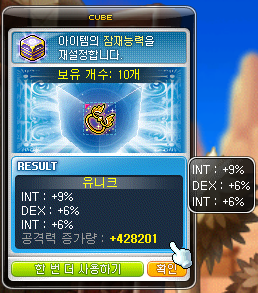 이벤트로 받은 큐브를 사용해서 일단 인트 15퍼 띄우는 데에 성공했습니다.