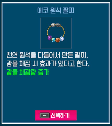 그리고 에코 워치 퀘스트를 하면서 보상으로 '에코 원석 팔찌'를 얻을 수 있었는데요.