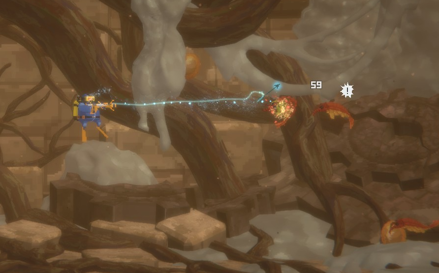 여기서도 조작이 가능한데 작살/총기 쏘듯이 조작을 하면 몬스터를 잡을 수 있고, 게임 제작에 참여한 제작진을 파괴도 할 수 있더라고요?