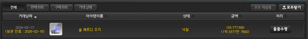 경매장에 방문해서 솔 에르다 조각을 몇개 구매를 했습니다.
