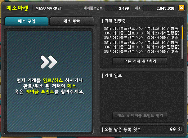 일단 메이플 포인트를 싹다 메소로 바꿔줬습니다. 기존 메포도 다 바꿔서 약 9억 메소를 얻을 수 있었는데요.