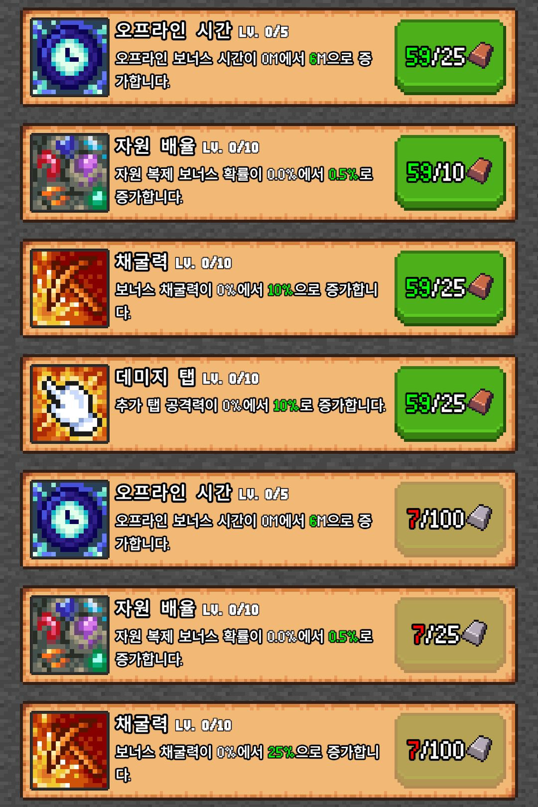 - 오프라인 방치시간을 인게임 재화로 늘릴 수 있음.