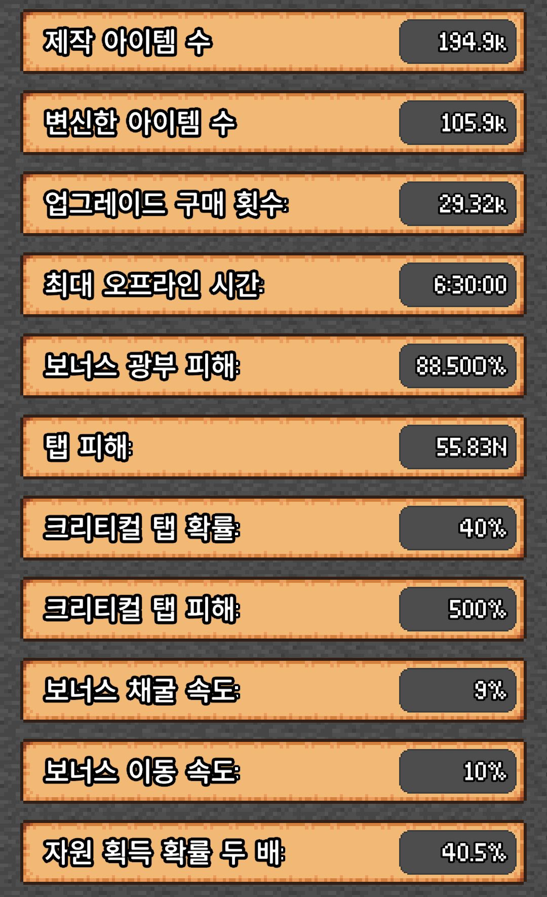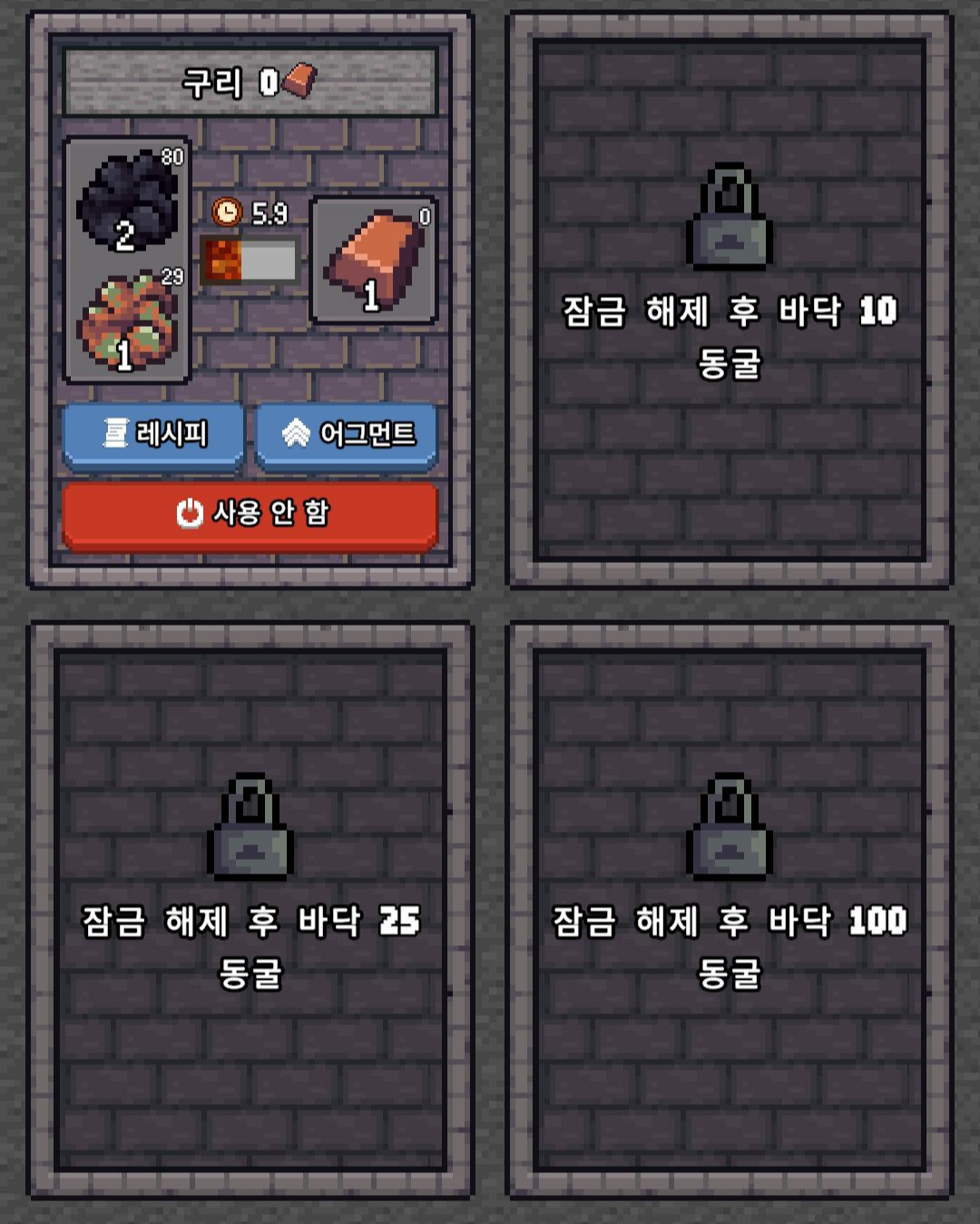 광산의 광물을 캐내고, 주괴를 만들어 발전해나가는 방치형 게임입니다.