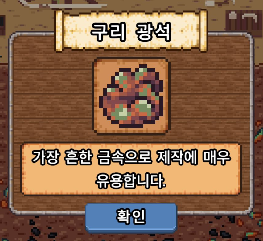 광석을 처음 얻게 되면 이렇게 얻은 광물에 대한 설명도 보여줍니다.