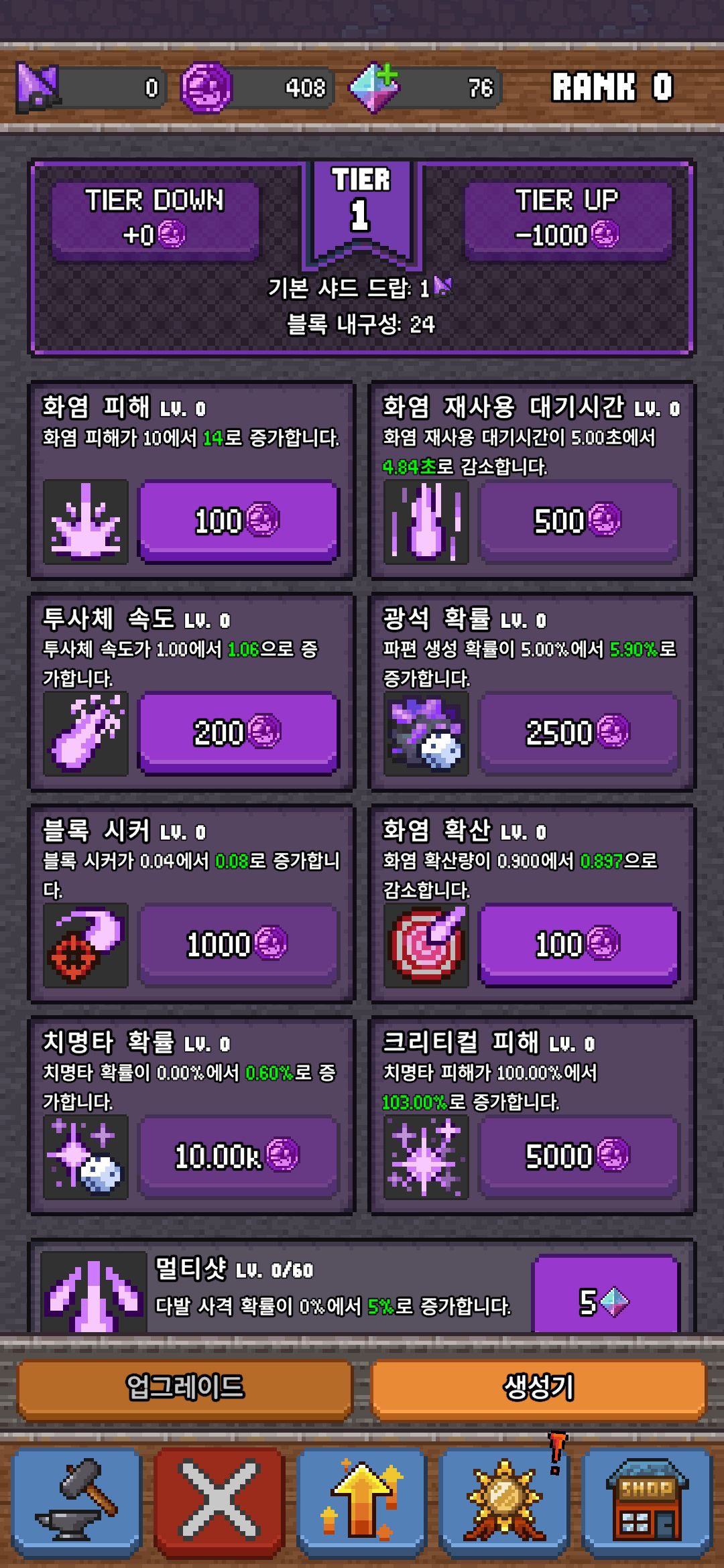인게임 재화, 코인, 보석이 싹 다 업그레이드 하는데에 사용되더라고요.