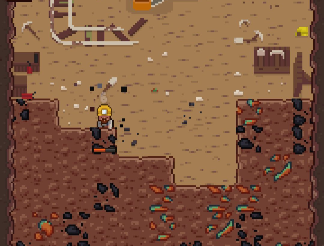 게임을 시작하게 되면 광부가 자동으로 광맥을 채굴하는 모습을 볼 수 있습니다.