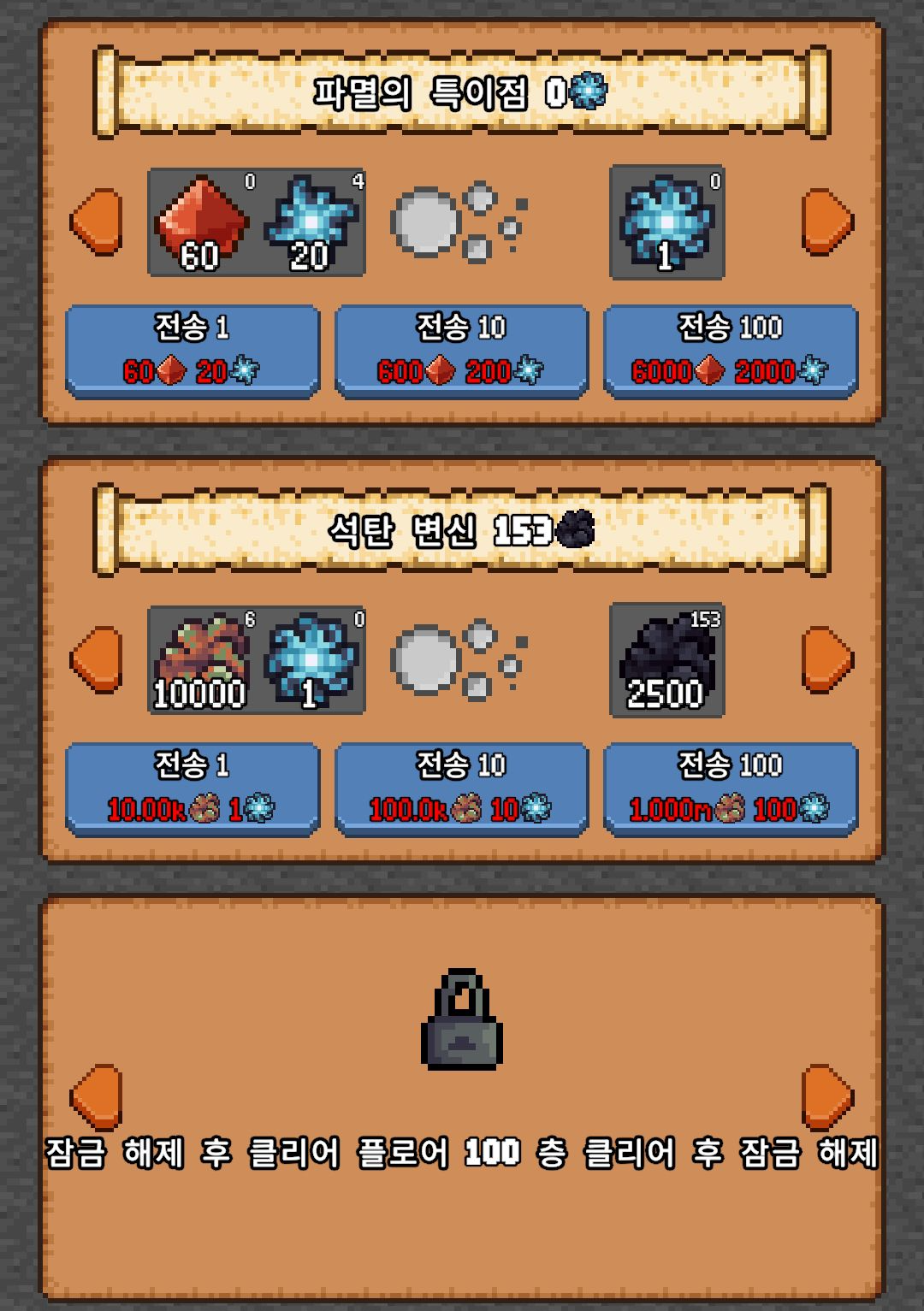 주괴과 보석을 통해서 업그레이드를 해서 심연 월드의 재화를 얻어서 또 업그레이드를 하는 방식이더라고요.