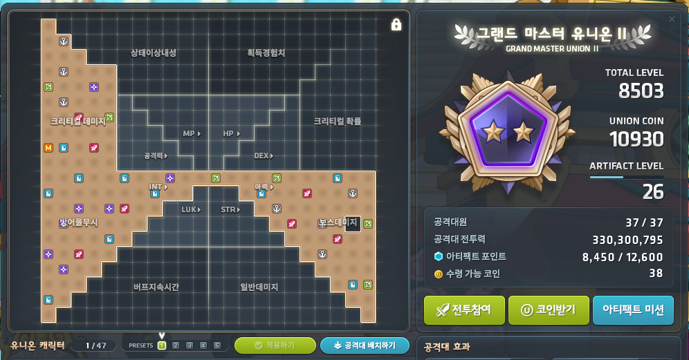그리고 이벤트의 도움을 받아서 유니온도 8,500을 달성했습니다. 이제 유니온 코인 수급도 잘되서 유니온 250작 이런거는 굳이 안해도 될 것 같습니다.