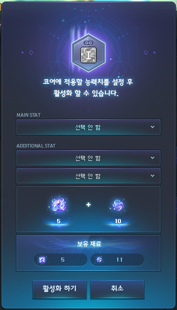 일단 스탯을 활성화 하기 위해서는 솔 에르다 5개, 조각 10개가 필요한데요. 다행히 재료는 준비 되어있었습니다.