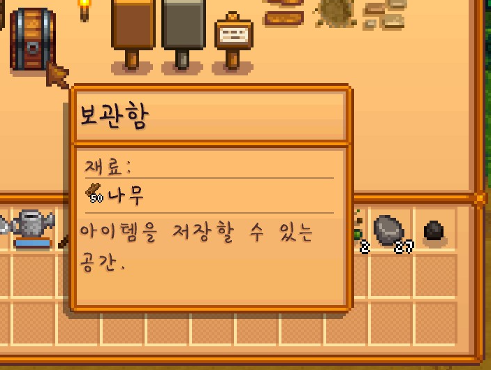 일단 나무를 베서 보관함을 먼저 만들어 줬고...