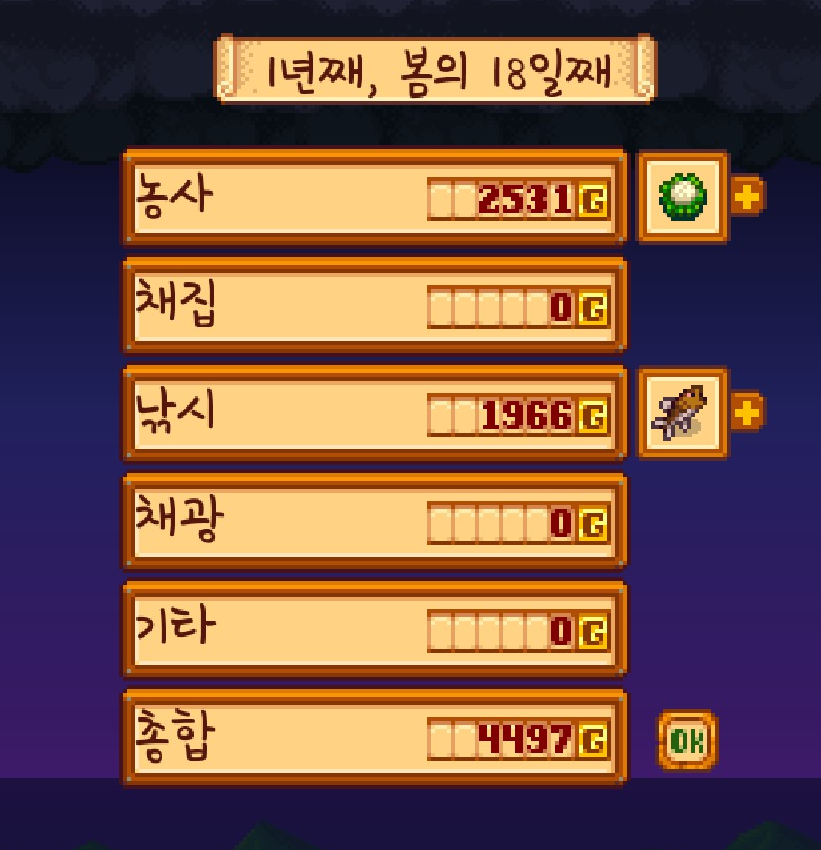 남은 시간에는 낚시를 하면서 시간을 보내는 꽤나 많은 돈을 벌 수 있었습니다. 슬슬 여름을 준비하기 위해 목돈을 좀 마련해야 할 듯 하네요.