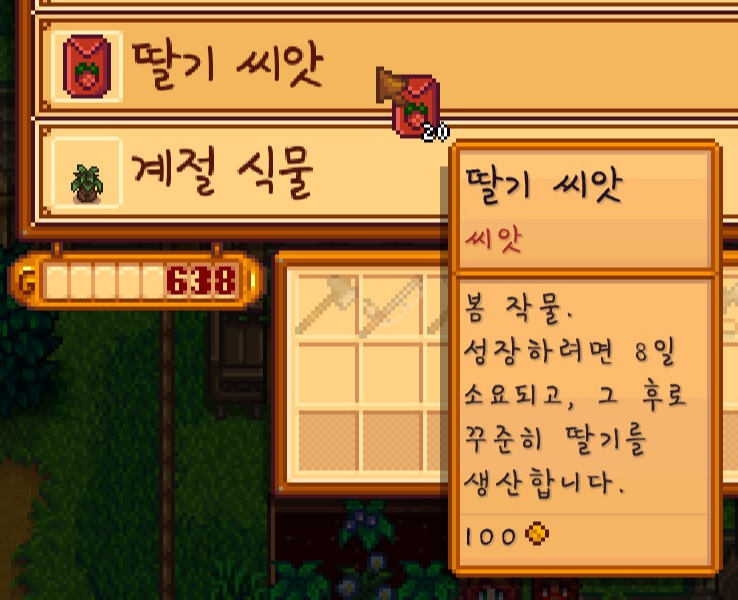 지금까지 모은 돈으로 딸기 씨앗을 조금 구매를 해줬고...