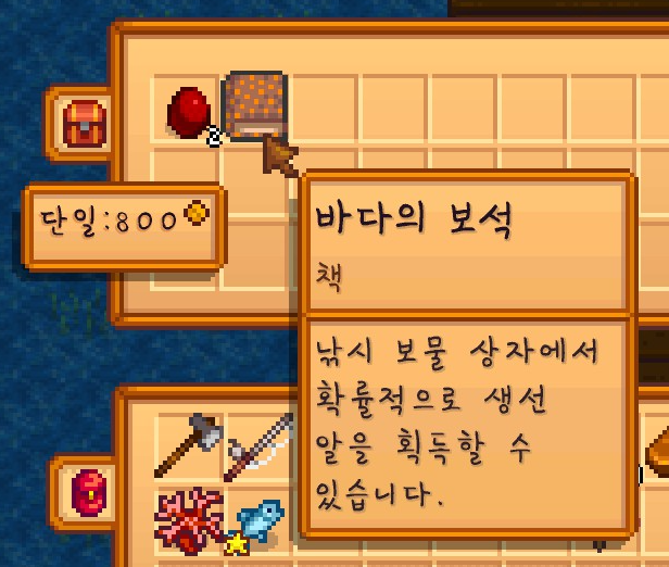낚시를 하다가 책을 얻을 수 있었는데요. 확률적으로 생선 알을 얻을 수 있는 패시브를 준다고 합니다.