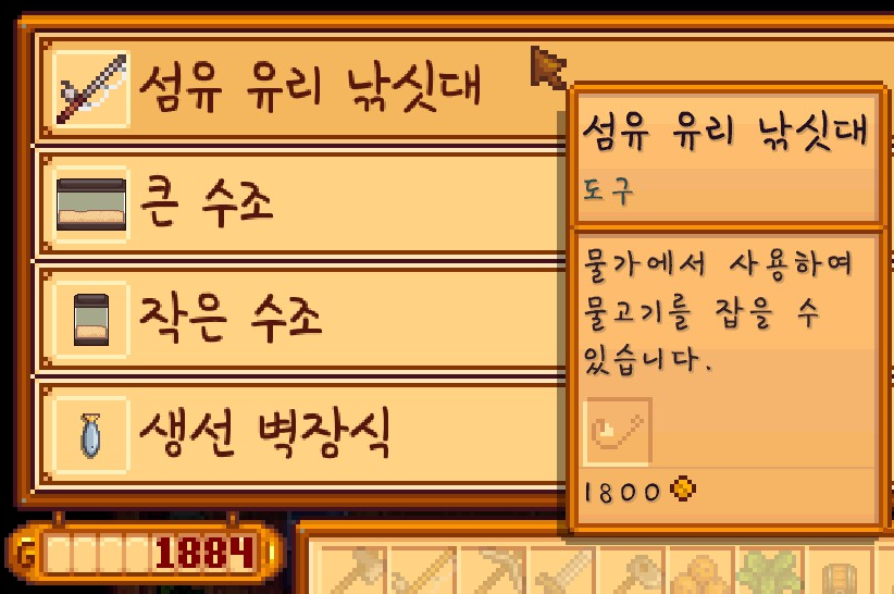 일단 모은 돈으로 낚싯대를 구매했습니다.