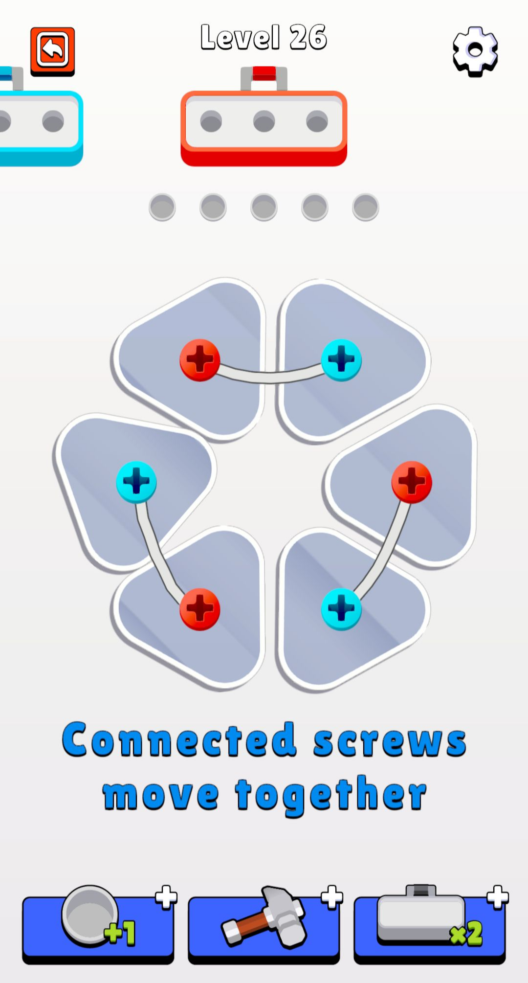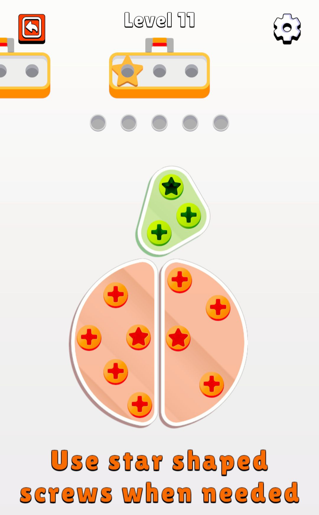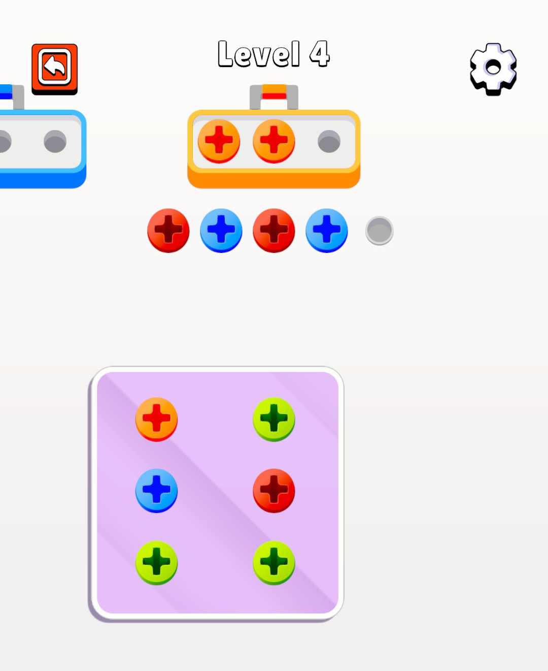 같은 색깔의 나사를 순서대로 풀어서 해결하는 퍼즐 게임입니다.