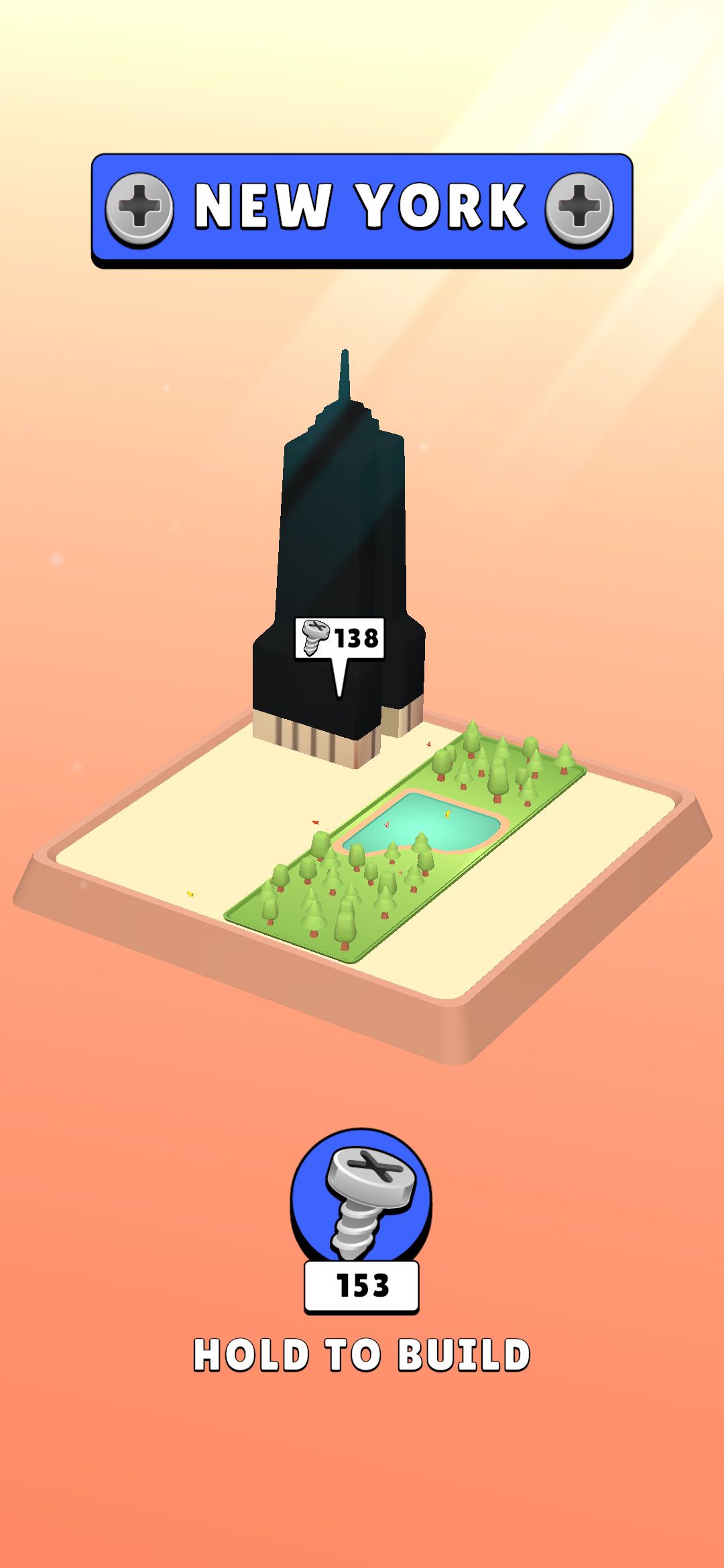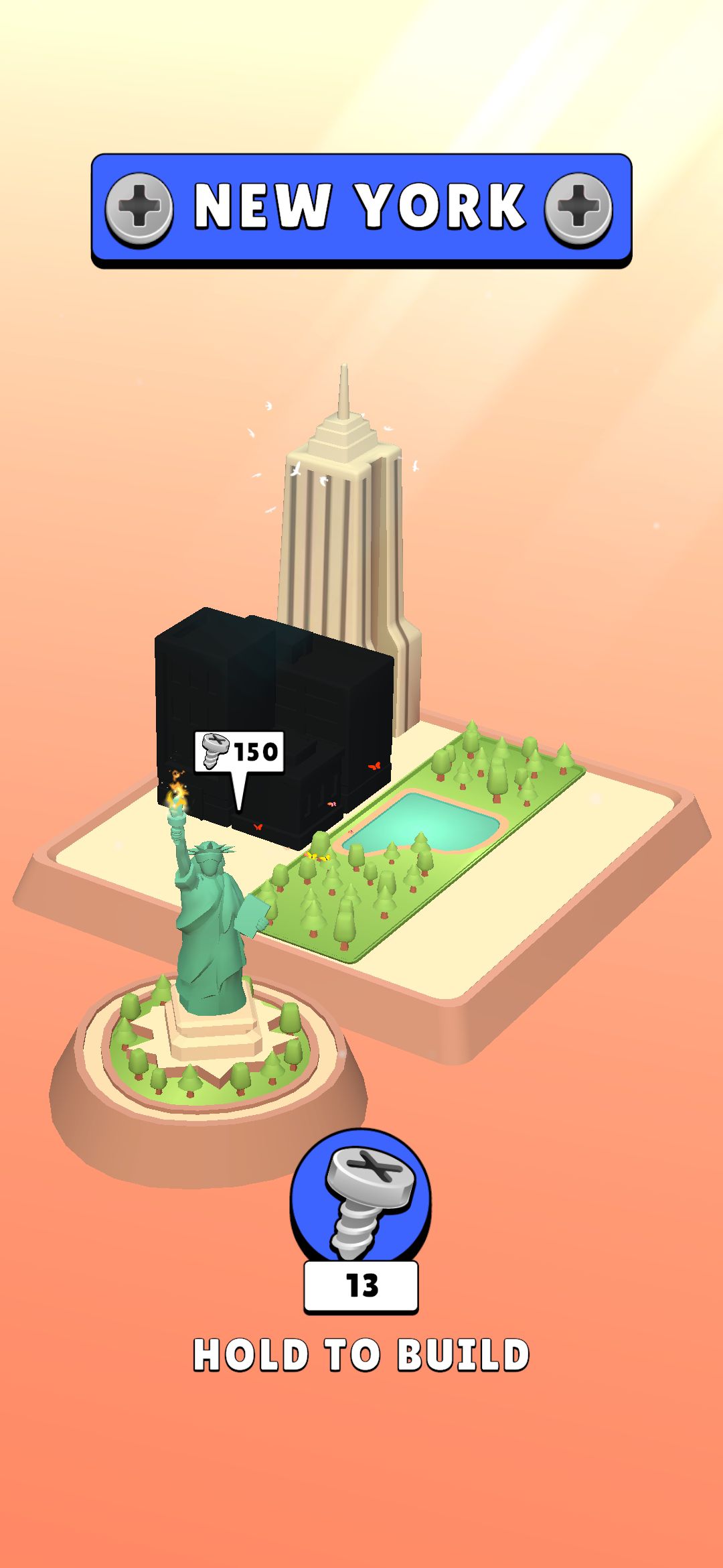 그리고 스테이지를 클리어하면 나사를 모을 수 있는데 이걸 사용해서 도시를 재건할 수 있습니다. 별다른 기능은 없고 그냥 메인 화면을 다채롭게 해주는 그런 요소더라고요.