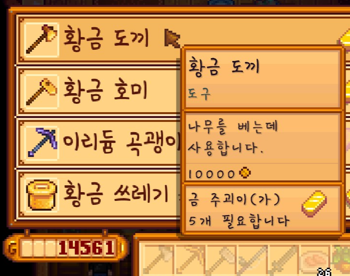피에르의 잡화점에 들러서 가을 작물 씨앗들은 최소 한개씩은 전부 다 구매하고, 주로 심을 작물로는 크랜베리를 선택했습니다.