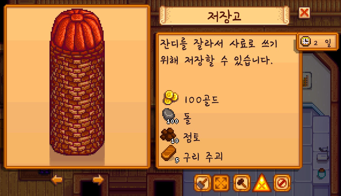 그리고 재료를 모아서 저장고를 하나 더 만들 생각입니다. 목축 농장이고 목축 컨셉으로 갈 예정이라 앞으로 몇개 더 건설을 해야하지 않을까 싶네요.
