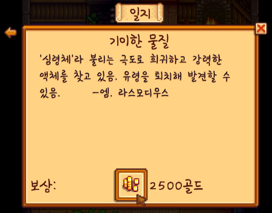 루이스 촌장 집 앞에 있는 게시판에서 마법사의 퀘스트를 하나 받았었는데 가져댜 줘야하는 아이템인 '심령체'를 얻을 수 있었습니다.