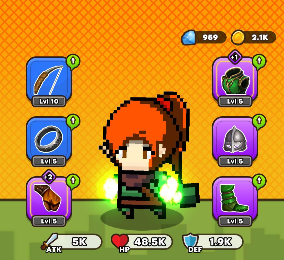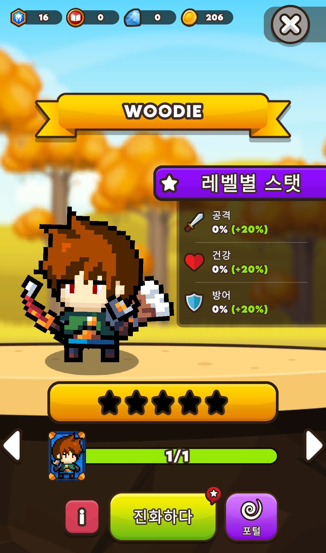 재화를 모아서 캐릭터의 등급과 레벨을 올릴 수 있고, 캐릭터의 패시브 스탯을 골드를 통해서 구매할 수 있습니다.