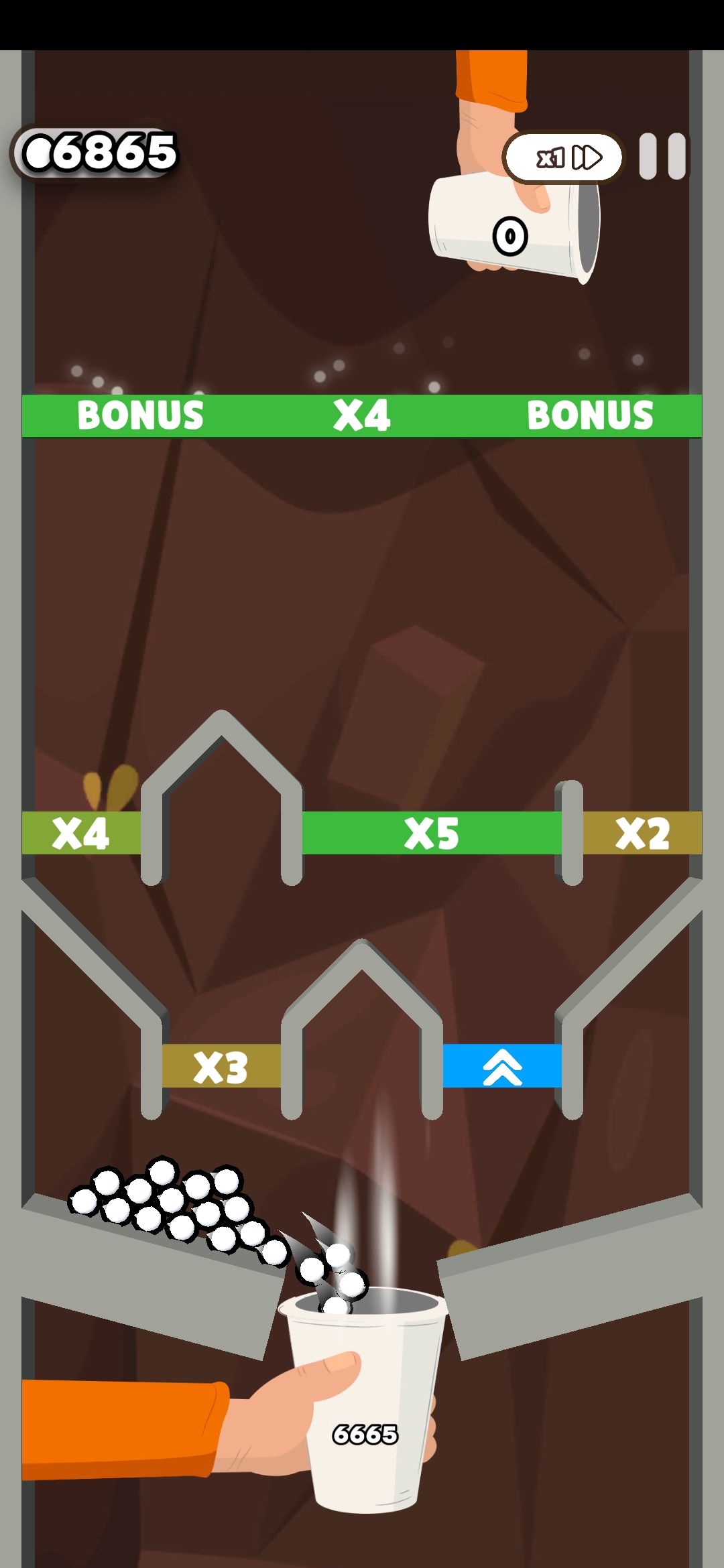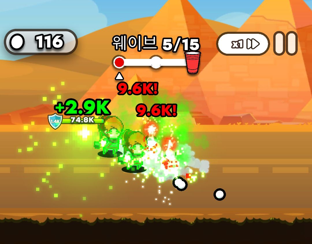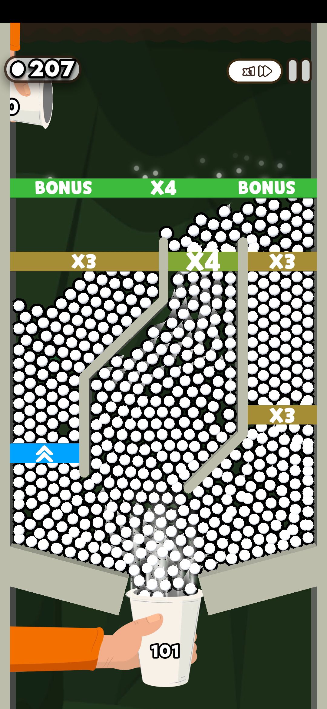 게임을 시작하게 되면 캐릭터가 적들을 알아서 잡아줍니다. 플레이어가 직접 조절 해야하는 것은 컵에 쌓인 구슬을 떨어뜨려서 구슬의 수를 불리는 것인데요.