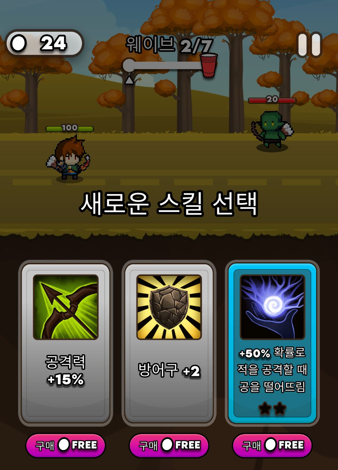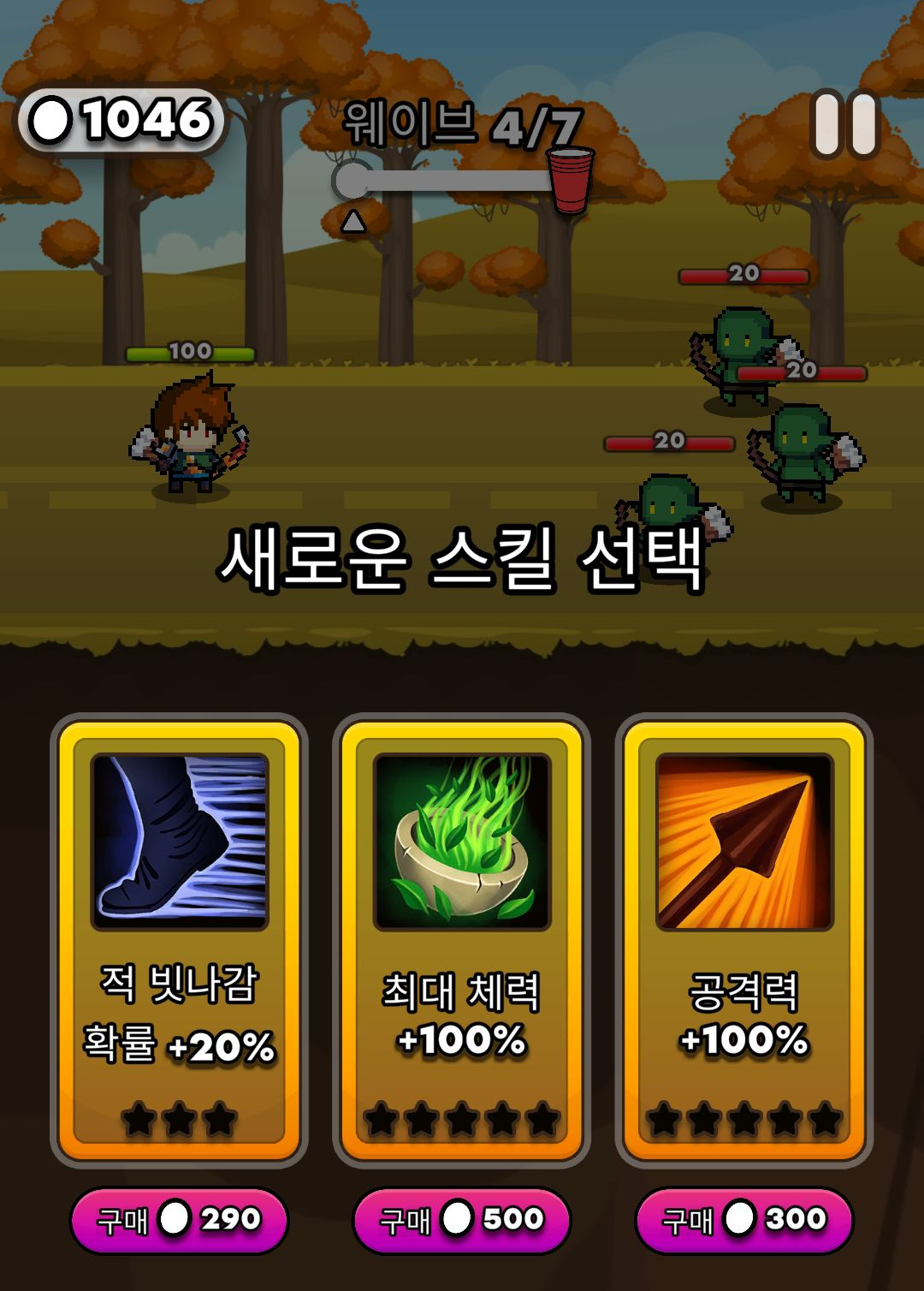 각 웨이브를 넘을 때마다 새로운 스킬을 얻을 수 있는데요. 바로 구슬을 사용해서 스킬을 선택해 배울 수 있습니다.
