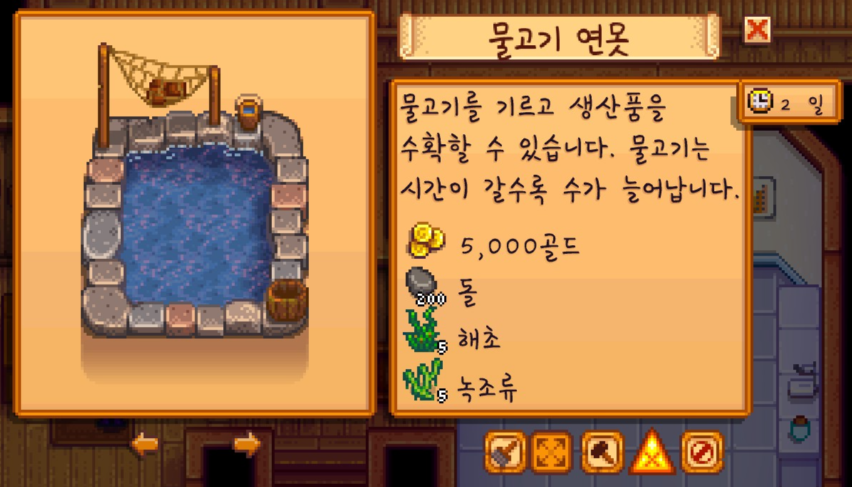 다시 로빈을 찾아가 물고기 연못 건설 의뢰를 맡겼습니다. 아마 앞으로 두개 정도는 더 건설 해야하지 않을까 싶네요.